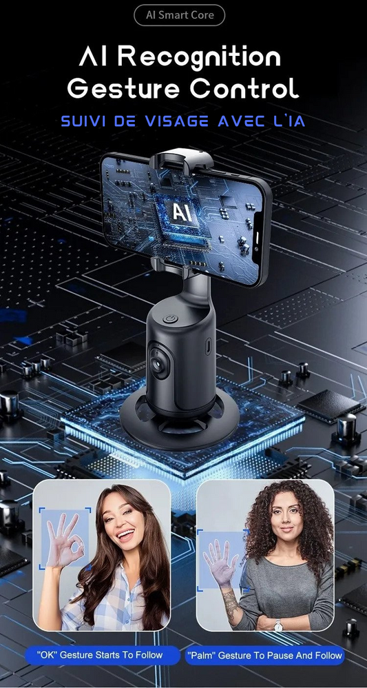 Phone Holder with AI Artificial Intelligence - Automatic Face Tracking 360° Rotation